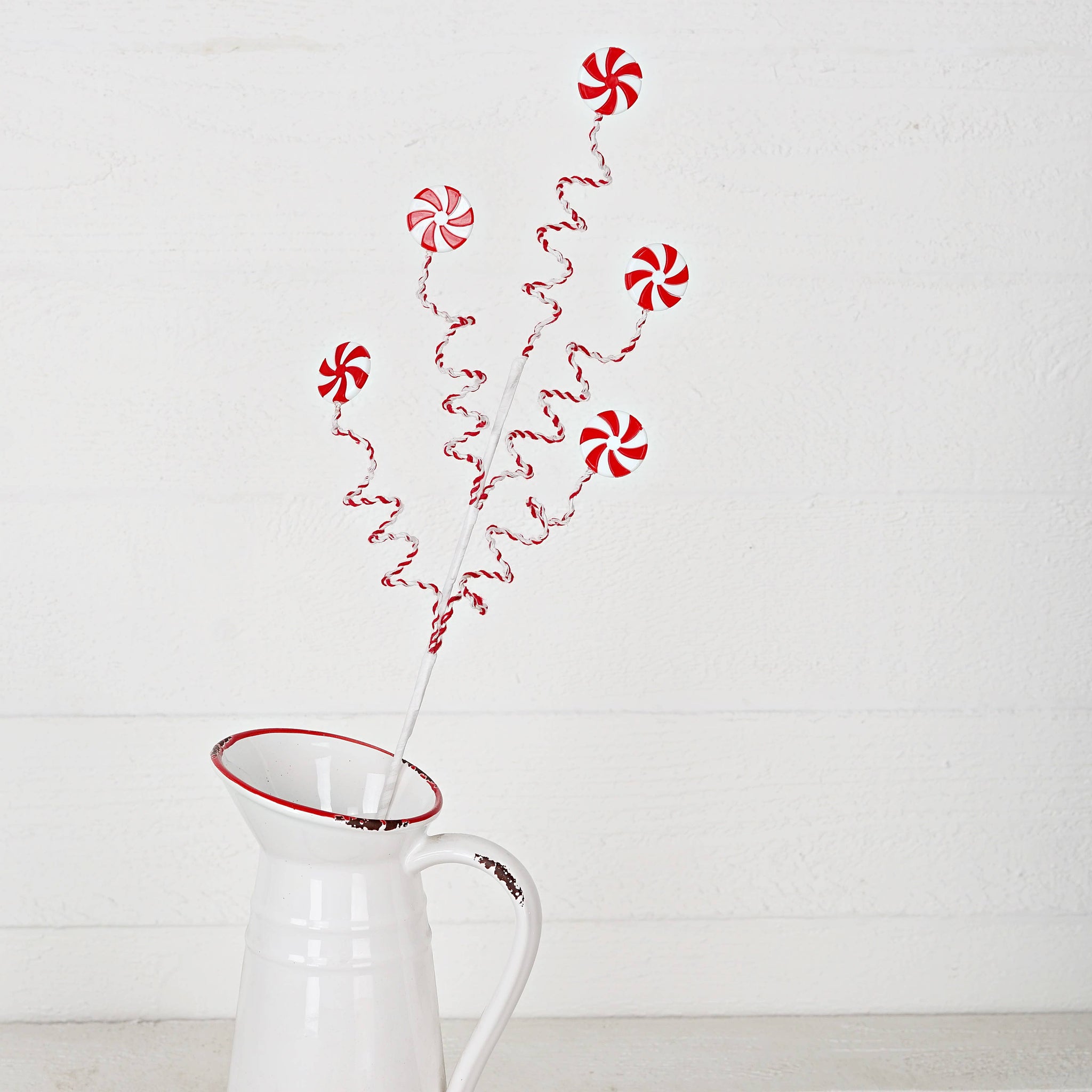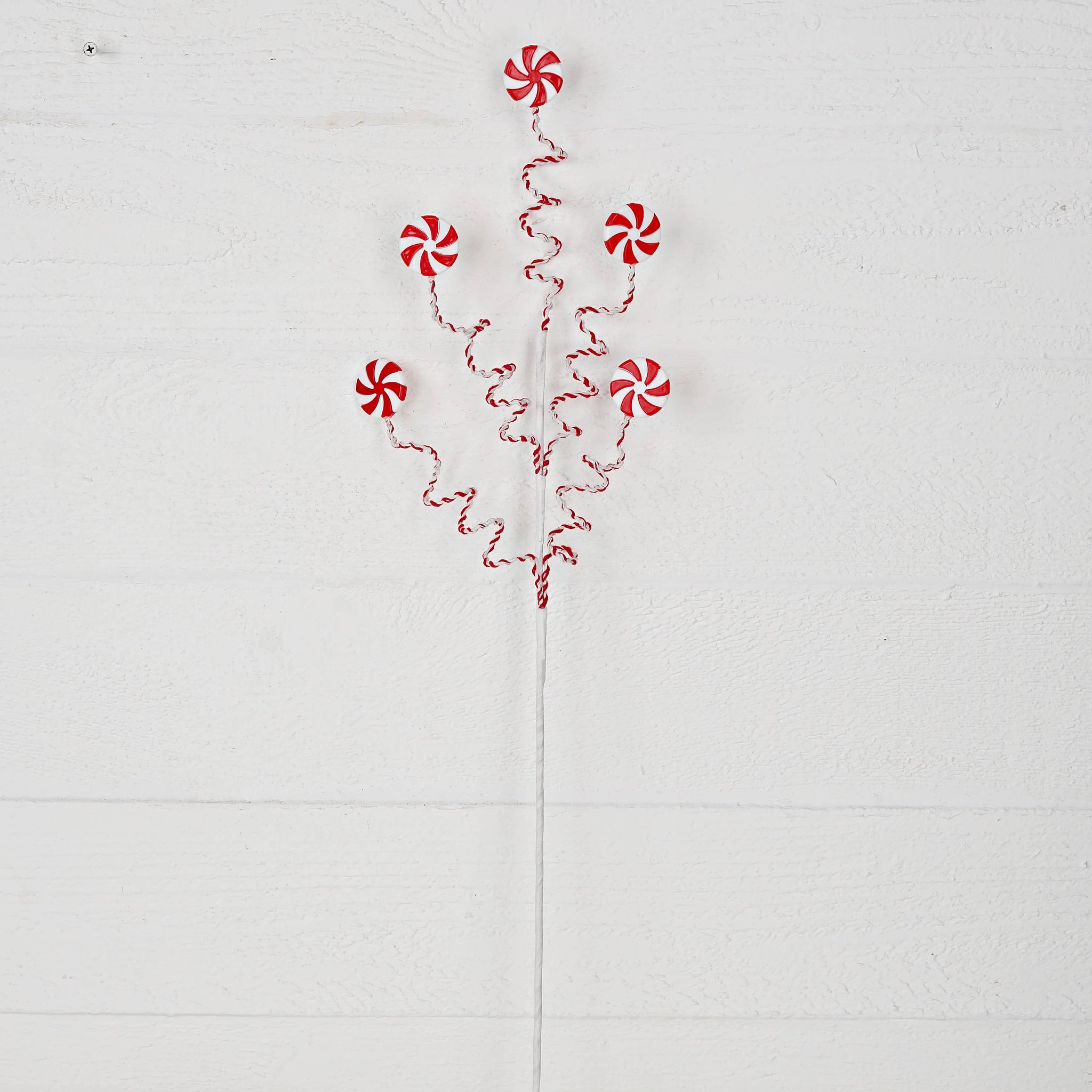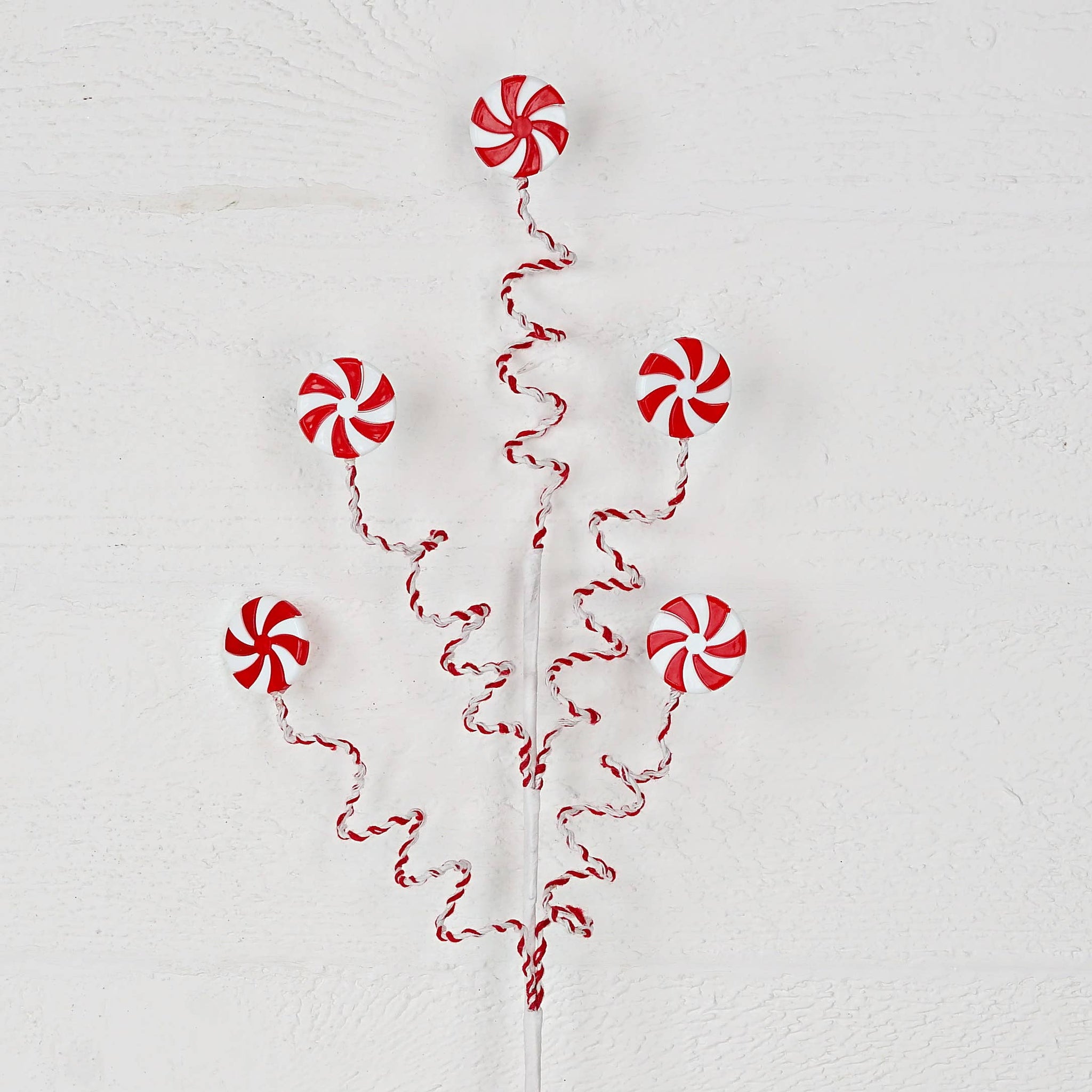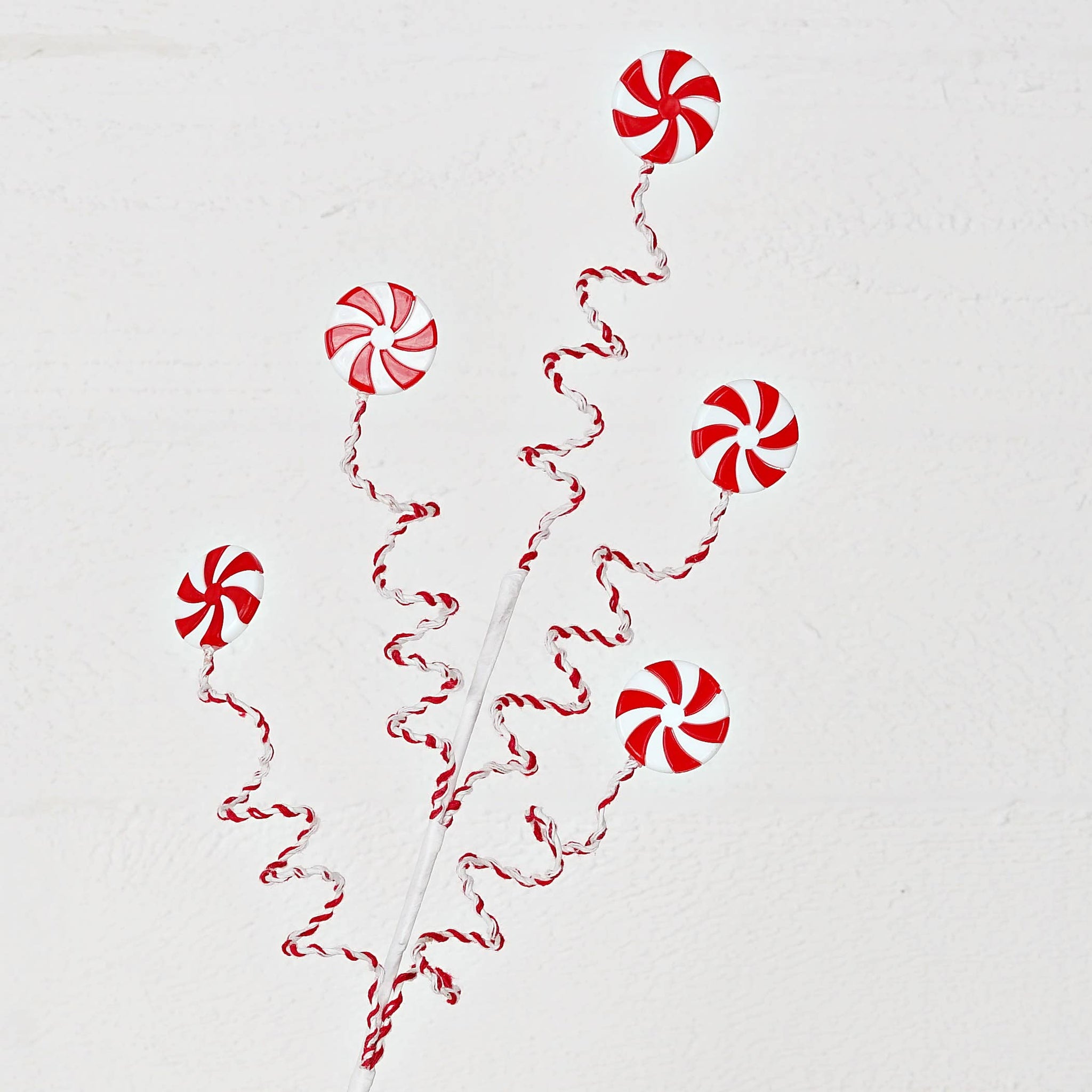 26in Long Branch with 5pcs faux Peppermint Candy on springing stem, a lively and fun branch for Christmas Decorations, Holiday Decorations, Farmhouse Decoration